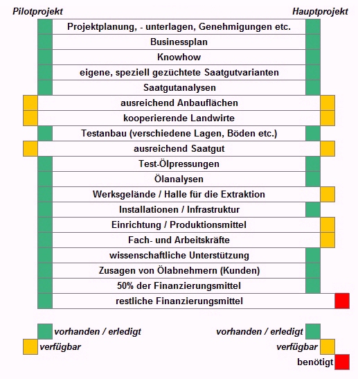Wir benötigen für den Start eines unserer Projekte: Wir bieten für die Projekte: Wir erreichen durch die Projekte: Aktuell: Projekt-Status: |